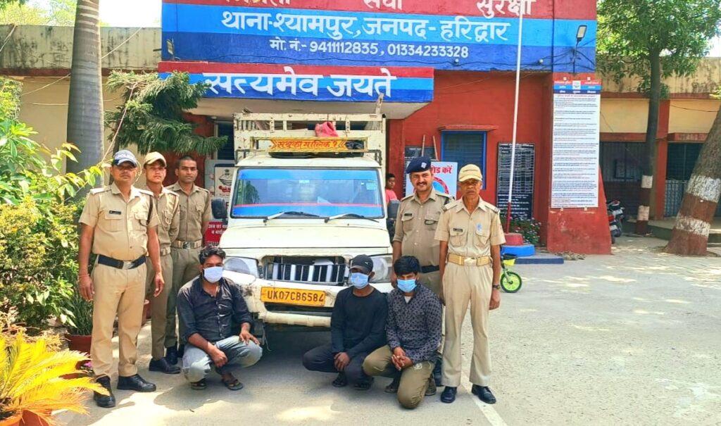 02 मुकदमों का हुआ खुलासा अन्य की जानकारी के लिए पूछताछ जारी, चोरी में दो सगे भाई शामिल थाना श्यामपुर हरिद्वार पर दिनांक 16.04.2024 को NH-74 हाइवे के कर्मियो द्वारा अलग अलग मु0अ0स0 56/2024 धारा 379 भादवि व मु0अ0स0 57/2024 धारा 379 भादवि बनाम अज्ञात पंजीकृत कराये गये । जिसमे उच्चाधिकारीगण महोदय के दिशा निर्देशन में मुझ थानाध्यक्ष द्वारा चोरी की घटना के खुलासे हेतु थाना स्तर पर अलग अलग टीमे गठित की गयी । टीमो द्वारा अच्छी सुरागरस्सी पतारस्सी करते हुए आज दिनांक 30.04.2024 को मुखबिर खास की सूचना पर पीली नदी पुल के पास जंगल मे खडी बोलेरो मैक्स वाहन संख्या UK07CB6584 जिसमे NH-74 हाईवे का चोरी किया गया सामान भरा हुआ था जिसके पास खडे 03 अभि0गण (1) यासीन पुत्र नसीम अहमद निवासी तेली मौहल्ला जौलीग्रांट थाना कोतवाली डोईवाला जिला देहरादून उम्र 32 वर्ष (2) तहसीन पुत्र नसीम अहमद निवासी तेली मौहल्ला जौलीग्रांट थाना कोतवाली डोईवाला जिला देहरादून उम्र 27 वर्ष (3) आशीष पुत्र श्री किशोर चन्द निवासी राजीव नगर थाना कोतवाली डोईवाला जिला देहरादून उम्र 24 वर्ष को गिरफ्तार कर शत प्रतिशत चोरी किया गया सामान बरामद किया गया जिसकी जनता द्वारा भूरी-भूरी प्रंशसा की गयी ।