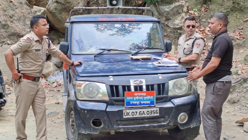 श्री अजय गणपति, पुलिस अधीक्षक महोदय जनपद चम्पावत के निर्देशानुसार तथा *पुलिस उपाधीक्षक महोदय चम्पावत/टनकपुर* के पर्येवेक्षण में जनपद में हो रहे *मेलों आदि में श्रद्धालुओं/यात्रियों* को सुरक्षित दर्शन कराये जाने व *सुगम यातायात व्यवस्था* प्रदान किये जाने हेतु सभी थाना प्रभारियों को निर्देशित किया गया है। उक्त के क्रम में *श्री माँ पूर्णागिरि मेला क्षेत्र* में सड़क दुर्घटनाओं पर प्रभावी रुप से अंकुश लगाने हेतु नशे में वाहन चलाने वालों/ तीव्र गति से वाहन चलाये जाने व ओवरलोडिंग करने व *यातायात नियमों का उल्लंघन* करने वाले वाहन चालकों के विरुद्ध कार्यवाही के क्रम में आज दिनांक 22-05-2024 को *अस्थाई थाना ठुलीगाड़ व अस्थाई थाना भैरव मंदिर पुलिस* द्वारा पूर्णागिरि मार्ग में *हनुमान चट्टी स्थल/ लाधिगाड़ स्थल* पर *उ0नि0 हरीश प्रसाद*- थानाध्यक्ष ठुलीगाड़ व *उ0 नि0 हेमंत सिंह कठैत* - थानाध्यक्ष भैरवमंदिर के संयुक्त कार्यवाही में *हनुमान चट्टी* में संयुक्त वाहन चेकिंग अभियान संचालित किया गया।