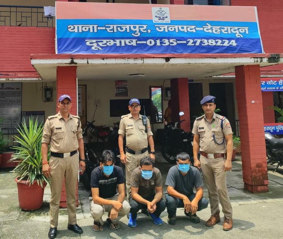 देश के कई राज्यो में जमीनी धोखाधड़ी में सक्रिय बाबा अमरीक सिंह गिरोह के मास्टर माइंड अभियुक्त अमजद अली सहित 03 अभियुक्तो को दून पुलिस ने उ0प्र0 व हरियाणा से किया गिरफ्ता,गिरोह के सदस्यों के विरुद्ध उत्तराखंड सहित अन्य राज्यो में जमीनी धोखाधड़ी के डेढ़ दर्जन से अधिक अभियोग है पंजीकृत,गिरफ्तार अभियुक्तगण थाना राजपुर में 15 करोड़ की धोखाधड़ी में पंजीकृत अभियोग में थे वांछित,