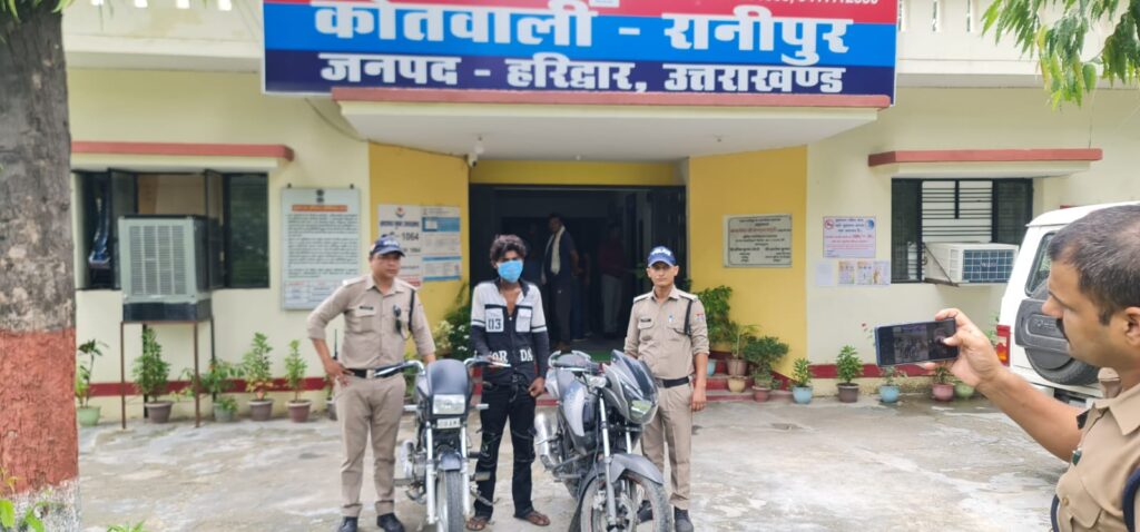 हरिद्वार के रानीपुर कोतवाली पुलिस के जब कामयाबी हाथ लगी जब पुलिस ने सिडकुल और रानीपुर से चोरी हुई दो बाइकों के साथ एक आरोपी को गिरफ्तार किया है। आरोपी ने रानीपुर और सिडकुल क्षेत्र में बाइक चोरी की घटना को अंजाम दिया था। पुलिस ने आरोपी के खिलाफ मुकदमा दर्ज कर जेल भेज दिया है।