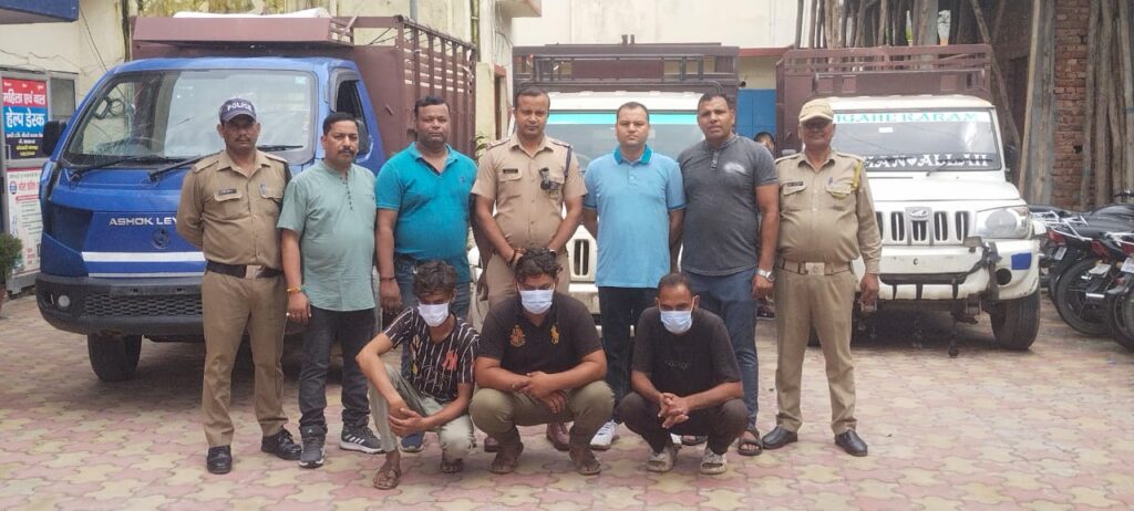 कोतवाली गंगनहर,हरिद्वार पुलिस को मिली एक और धमाकेदार सफलता,एसएसपी की लीडरशिप का दिख रहा असर, लगातार जाल में फंस रहे अपराधी, प्रोफेशनल पुलिसिंग के तहत हरिद्वार पुलिस एक के बाद एक लगातार कर रही बड़े खुलासे,बड़ी गाड़ियों पर हाथ साफ करने वाले शातिर मामा-भांजों को हरिद्वार पुलिस ने दबोचा,चोरी की 02 बोलेरो पिकअप व 01 अशोका लीलैंड वाहन बरामद, 03 शातिर दबोचे,चुराए गए वाहनों से पशु चोरी की घटनाओं को देने का था सपना, हरिद्वार पुलिस ने फेरा अरमानों पर पानी,गौकशी, चोरी मामलों में पूर्व में भी जा चुके हैं जेल,चुराए वाहनों को पंजाब ले जाकर नंबर बदलकर, गाड़ियों में पेंट करवाकर, फिर उन्हीं वाहनों से पशु चोरी की घटनाओं को करने का था इरादा,हरिद्वार पुलिस की इस बेहतरीन उपलब्धि पर स्थानीय जनता द्वारा संबंधित थाने पहुंचकर पुलिस अधिकारियों को बधाई दी,”इस प्रकार के और भी कई लोग हमारे रडार पर हैं जो गलत धंधों में लिप्त हैं, एक-एक कर सभी को जेल भेजा जाएगा :: एसएसपी हरिद्वार”।