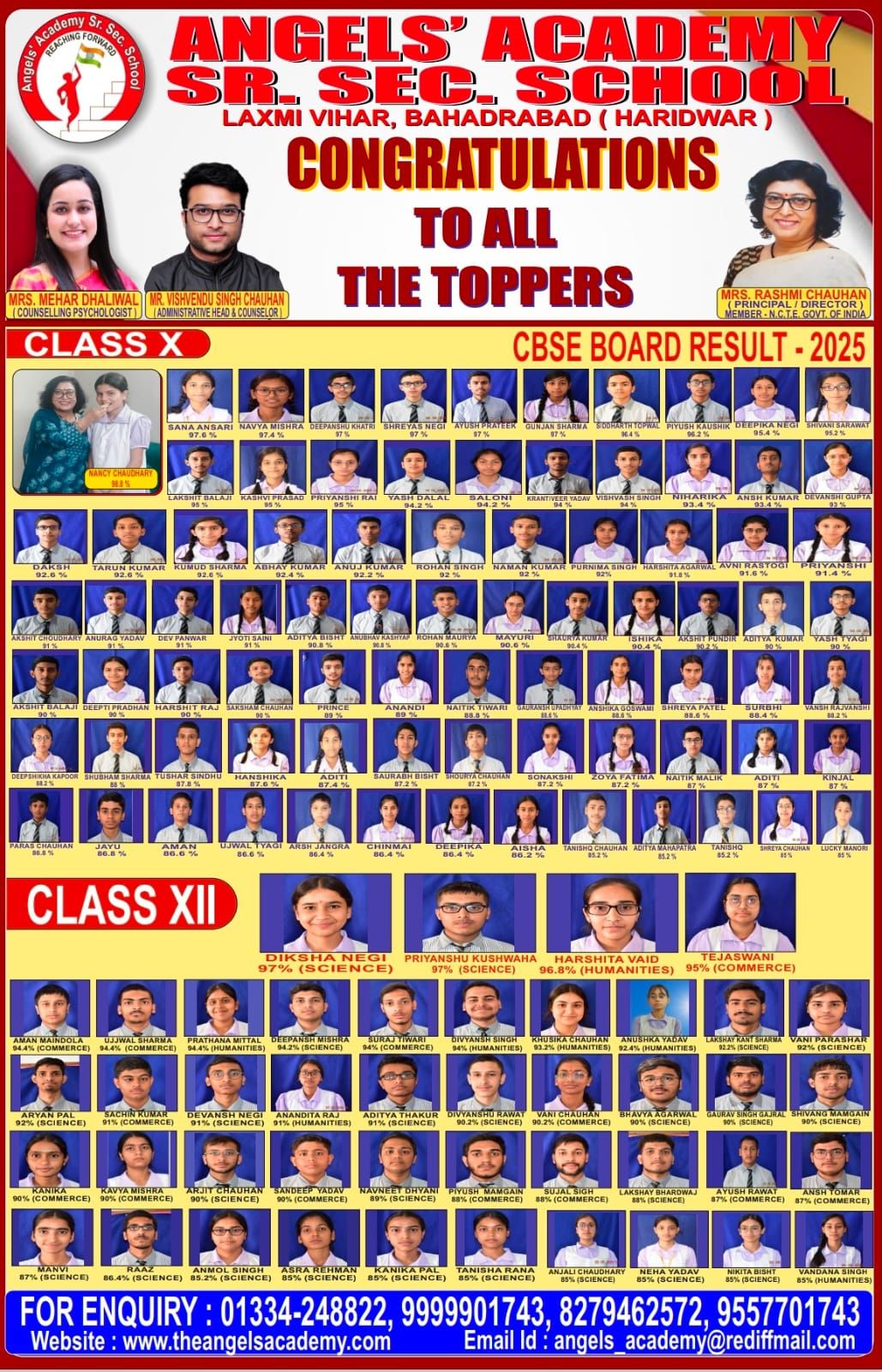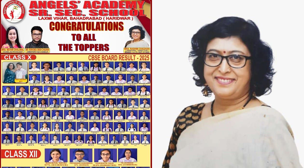 हरिद्वार के बहादराबाद स्थित एंजिल्स एकेडमी सी. से. स्कूल ने इस वर्ष कक्षा 10वीं व 12वीं के बोर्ड परीक्षा परिणामों में उत्कृष्ट प्रदर्शन कर क्षेत्र का नाम रोशन किया है।