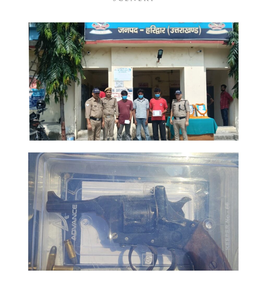 थाना कनखल,गोली मारकर हुये थे फरार, तीन आरोपियों को हरिद्वार पुलिस ने किया गिरफ्तार,एसएसपी हरिद्वार के नेतृत्व में कनखल पुलिस ने 72 घण्टे मे किया हत्या का खुलासा,आरोपियों से 01 रिवाल्वर व 4 जिन्दा कारतूस बरामद,घटना में प्रयुक्त मोटरसाइकिल भी की गई बरामद,घटनास्थल के निरीक्षण के दौरान मिला घटना में प्रयुक्त हुए कारतूस का खोखा।