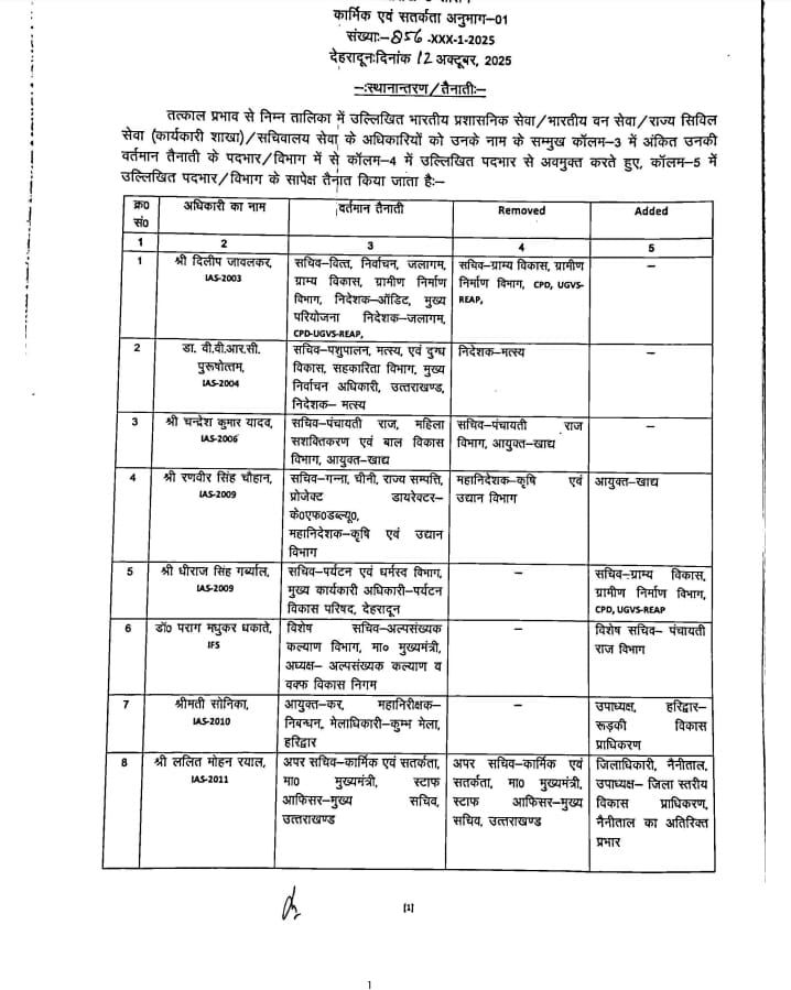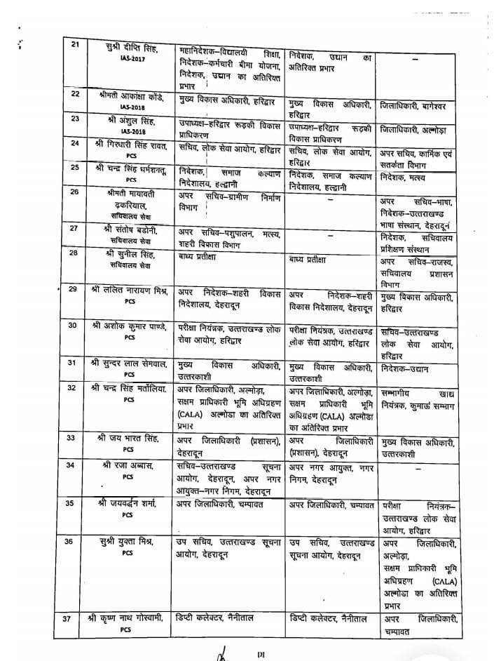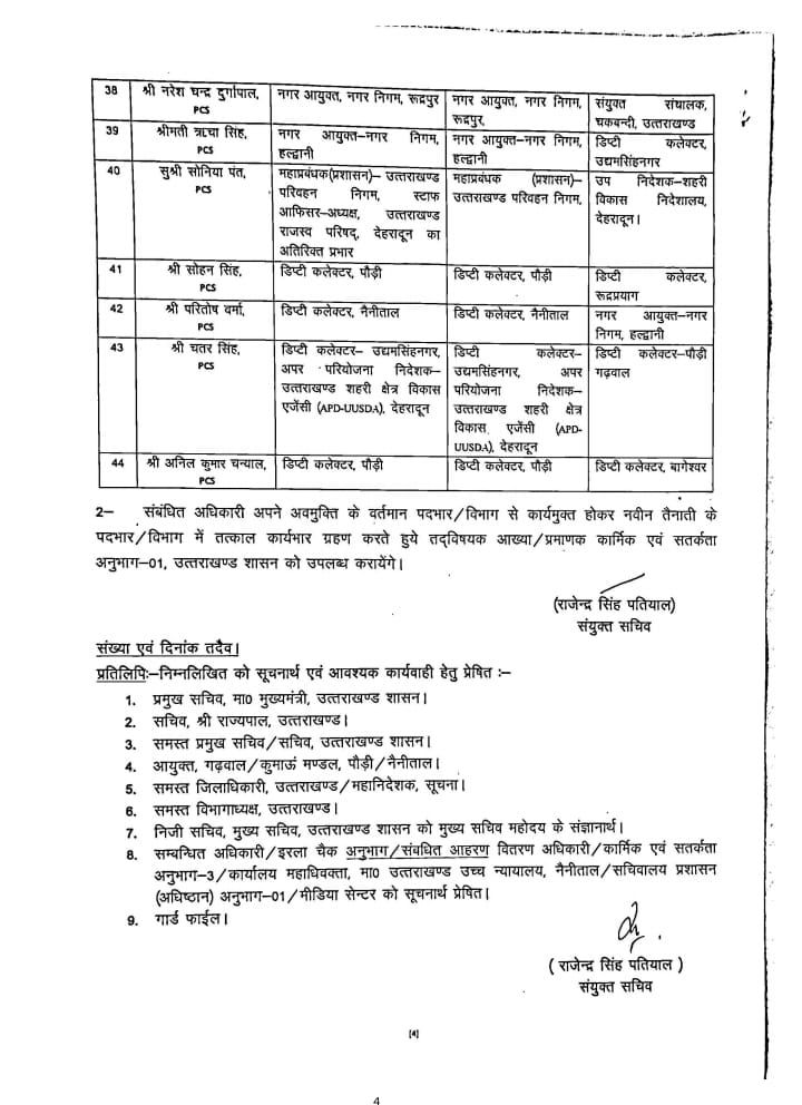 44 IAS और PCS अधिकारियों के कार्यक्षेत्र में किया गया बदलाव।