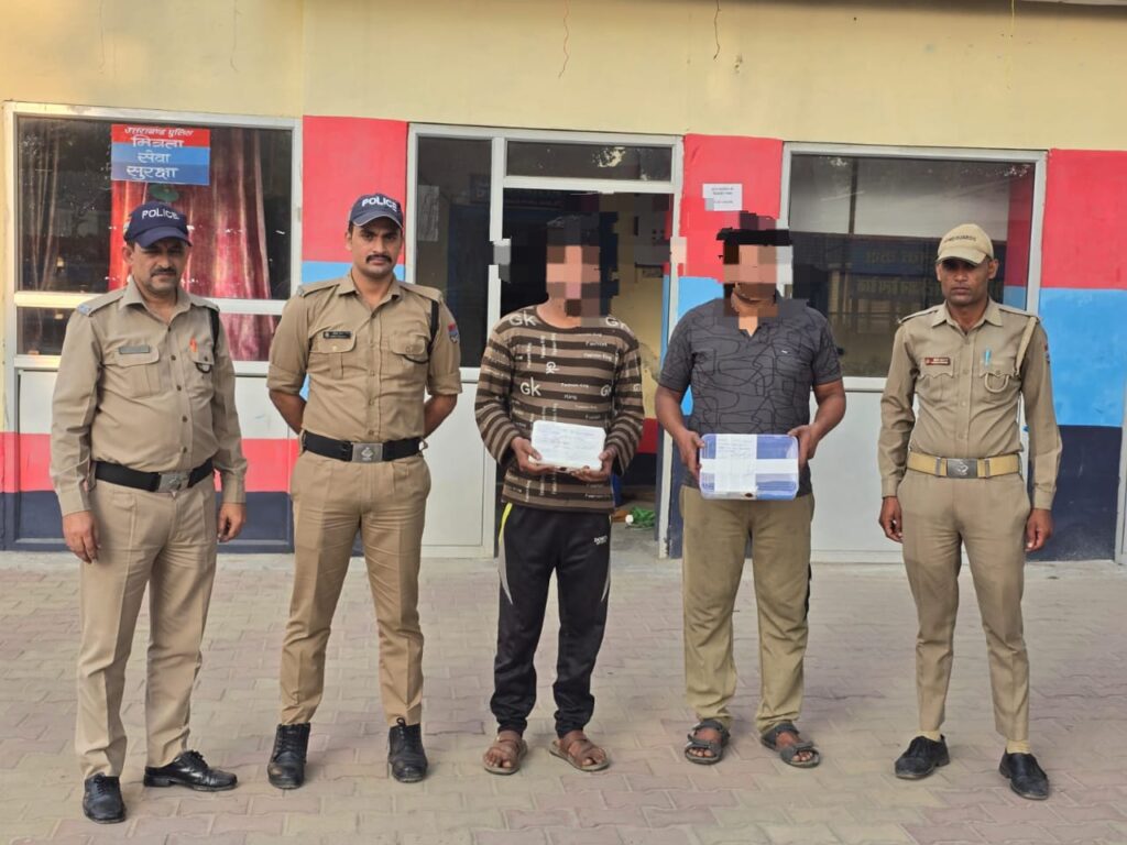 प्रत्येक संदिग्ध की भली भांति तलाशी लेकर चैकिंग की जा रही थी दिनांक 20.10.2025 को नहर पटरी मे चैकिंग के दौरान मोटरसाइकिल होण्डा साईन बिना नम्बर सन्दिग्ध प्रतीत होने पर रोक कर बैठे दो संदिग्ध व्यक्तियों को चेक करने पर उनके कब्जे से निम्न विवरण के अनुसार एक पिस्टल 6 जिंदा कारतूस एक चाकू बरामद हुआ।