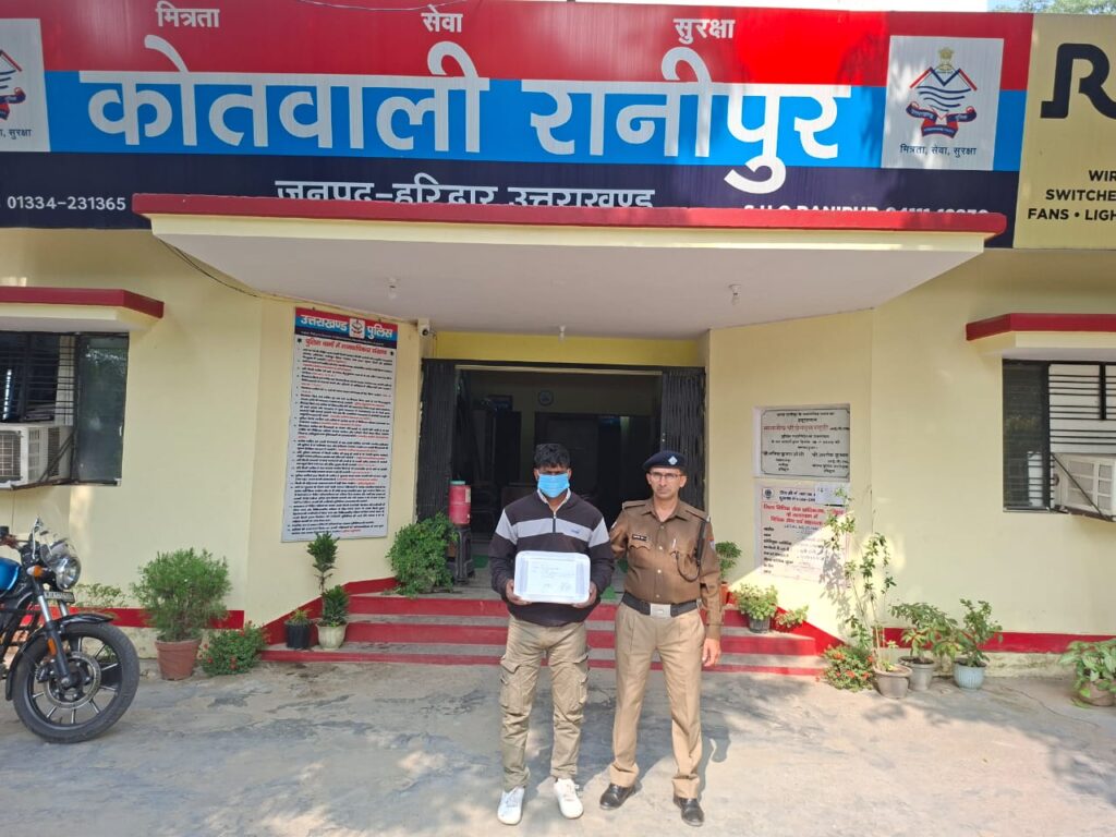 वरिष्ठ पुलिस अधीक्षक के आदेशानुसार आपराधिक घटनाओ की रोकथाम हेतु चलाये जा रहे अभियान के अनुपालन में कोतवाली रानीपुर पुलिस द्वारा दिनांक 31.10.2025 की रात्रि को संदिग्ध व्यक्तियो की चैकिंग के दौरान रानीपुर क्षेत्रान्तर्गत कृपालनगर जाने वाले कच्चे रास्ते से आरोपी संदीप शर्मा पुत्र मदन शर्मा स्थाई निवासी ग्राम तिरछा थाना व जिला सहरसा बिहार हाल निवासी रामेश्वर पार्षद के मकान पर किरायेदार गली नम्बर-02 टिबड़ी कोतवाली रानीपुर जनपद हरिद्वार को पकड कर उसके कब्जे से 01 अदद तमंचा 315 बोर व 01 कारतूस की बरामदगी की गयी ।