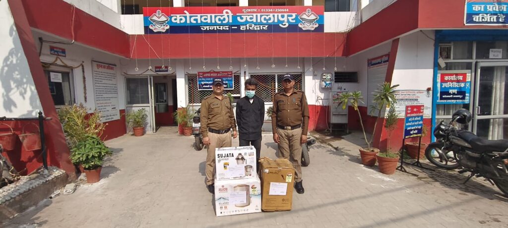 कोतवाली ज्वालापुर पुलिस को मिली सफलता, चंद घंटों के भीतर दबोचा चोर,दुकान से गीजर व मिक्सी चोरी की वारदात को अंजाम देकर फरार हुआ चोर,अभियुक्त के कब्जे से 02 गीजर व 01 मिक्सी बरामद।