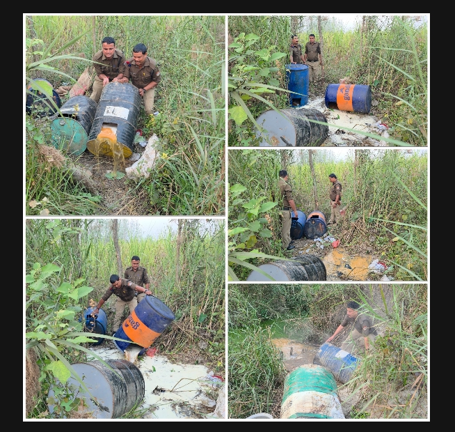 एसएसपी हरिद्वार द्वारा दिए गए निर्देश पर कार्यवाही करते हुए थाना बहादराबाद ल पुलिस ने आज दिनांक 08.11.2025 को थाना क्षेत्रांतर्गत अहमद ग्रंट के घने जंगलो व नालों में अवैध कच्ची शराब की घडपकड हेतु सर्चिंग अभियान चलाया। सर्चिंग अभियान के दौरान कच्ची शराब बनाने के लिए ड्रमो के अंदर छिपाकर रखे गए करीब 5000 लीटर लाहन को मौके पर ही नष्ट करते हुए बड़ी मात्रा में कच्ची शराब बनाने के उपकरण बरामद कर अग्रिम विधिक कार्रवाई की गई।