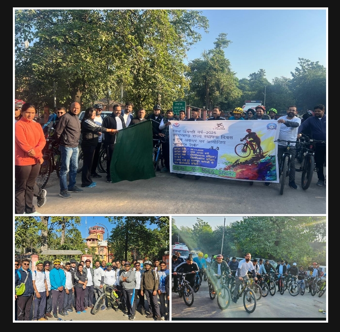 जिला खेल कार्यालय, हरिद्वार द्वारा राज्य स्थापना दिवस की 25वीं जयंती (रजत जयंती वर्ष) के अवसर पर आज दिनांक 09 नवम्बर, 2025 को प्रातः 8:00 बजे साईकिल रैली का आयोजन किया। साईकिल रैली का शुभारम्भ श्रीमती शबाली गुरुंग जिला क्रीडा अधिकारी हरिद्वार एवं श्री आशु चौधरी जिला उपाध्यक्ष (हरिद्वार) भारतीय जनता पार्टी द्वारा हरी झंडी दिखाकर किया गया। साईकिल रैली सी.सी.आर. हरिद्वार से आरम्भ होकर कमला पैलेस श्यामपुर कॉगडी से वापस सी.सी.आर. हरिद्वार पर आकर समाप्त हुयी। साईकिल रैली में प्रतिभाग करने वाले सभी प्रतिभागियों को खेल विभाग हरिद्वार द्वारा टी.शर्ट वितरित की गयी।