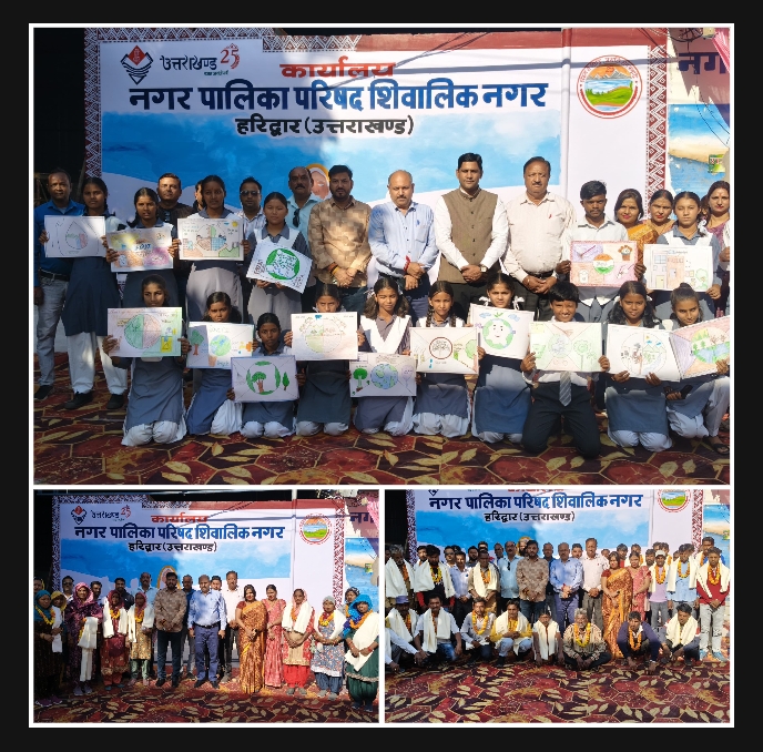 उत्तराखंड राज्य स्थापना दिवस (रजत जयंती वर्ष) के अवसर पर आयोजित कार्यक्रमों की श्रृंखला के अंतर्गत नगर पालिका शिवालिक नगर द्वारा नगर पालिका कार्यालय परिसर में चित्रकला एवं निबंध प्रतियोगिता के विजेताओं तथा पर्यावरण मित्रों (स्वच्छता कर्मियों) को सम्मानित किया गया।