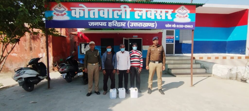 कोतवाली लक्सर,3 शराब तस्कर को हरिद्वार पुलिस ने धर दबोचा,मौके से 25 लीटर अवैध कच्ची शराब बरामद,आरोपी के विरुद्ध आबकारी अधिनियम में किया अभियोग पंजीकृत।