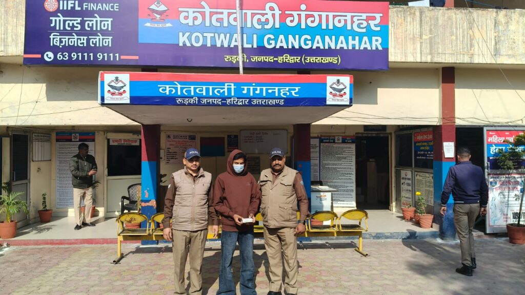 माननीय मुख्यमंत्री उत्तराखंड महोदय के ड्रग्स फ्री देवभूमि अभियान 2025 के तहत जनपद को नशा मुक्त करने व नशा (अवैध शराब / स्मैक/ चरस आदि) तस्करों के विरुद्ध हरिद्वार पुलिस द्वारा चलाए जा रहे अभियान को सफल बनाने के क्रम में थाना कोतवाली गंगनहर पुलिस द्वारा थाना क्षेत्र अंतर्गत दौराने चैकिंग दिनांक 15.11.25 को 01 व्यक्ति गय्यूर पुत्र कय्यूम निवासी हसन कॉलोनी रामपुर रुड़की कोतवाली गंग नहर जनपद हरिद्वार को स्वामी विवेकानंद विद्यालय जाने वाले मार्ग पर से 04.85 ग्राम अवैध स्मैक के मय मोटरसाइकिल बिना नंबर के साथ पकडा गया।