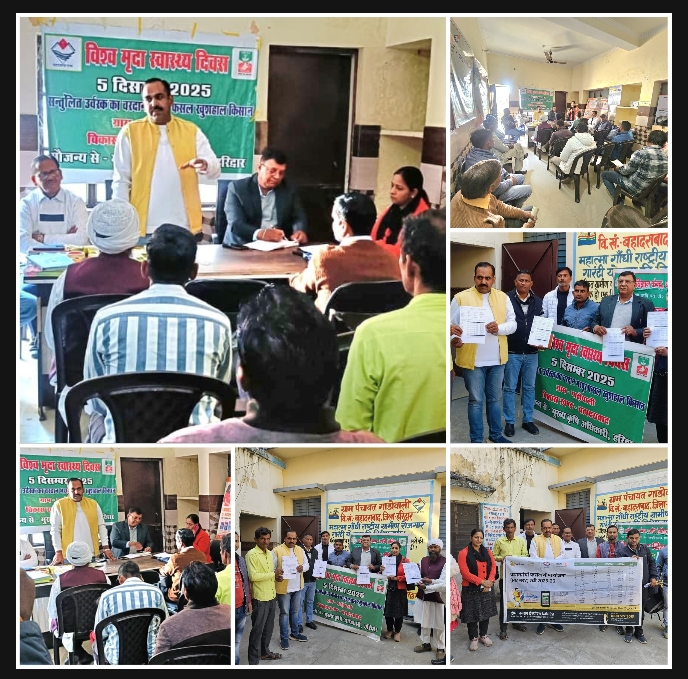 विश्व मृदा दिवस पर आयोजित संगोष्ठी में किसानों को किया गया जागरूक…बहादराबाद ब्लॉक के ग्राम गाड़ोवाली को भारत सरकार ने भूमि संरक्षण के लिए किया चयन… मिट्टी के स्वस्थ रहने से ही भोजन, स्वास्थ्य और ग्रह रहता है सुरक्षित…आशु चौधरी…