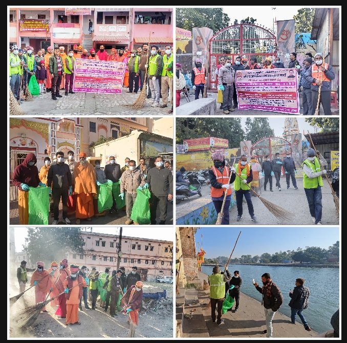 धर्मनगरी को सुंदर एवं स्वच्छ बनाने के लिए धार्मिक संस्थाओं, मठों एवं अखाड़ों के सहयोग से चलाया गया वृहद स्वच्छता अभियान,गंगा तटों,मार्गो एवं सार्वजनिक स्थलों,धार्मिक एवं पर्यटकों स्थलो पर चलाया गया स्वच्छता अभियान,मेलाधिकारी सोनिका, जिलाधिकारी मयूर दीक्षित,मुख्य नगर आयुक्त नंदन कुमार के निर्देशन में चलाया गया स्वच्छता अभियान,मुख्यमंत्री के निर्देशन में धर्मनगरी हरिद्वार को स्वच्छ,क्लीन एवं मॉडल जनपद बनाने का है लक्ष्य।