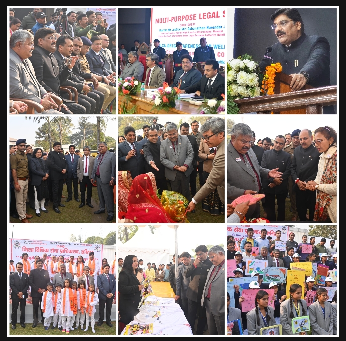 उत्तराखंड राज्य सेवा विधिक प्राधिकरण नैनीताल एवं जिला सेवा विधिक प्राधिकरण हरिद्वार के संयुक्त तत्वाधान में कोर कॉलेज हरिद्वार में नशा मुक्त अभियान के तहत बहुद्देश्य विधिक सेवा एवं जागरूकता शिविर का आयोजन किया गया,जिसमें मुख्य अतिथि माननीय मुख्य न्यायाधीश उच्च न्यायालय नैनीताल गुहनाथन नरेंद्र एवं विशेषत अतिथि न्यायमूर्ति राकेश थपलियाल ने दीप प्रज्वलित कर कार्यक्रम का शुभारंभ किया।*