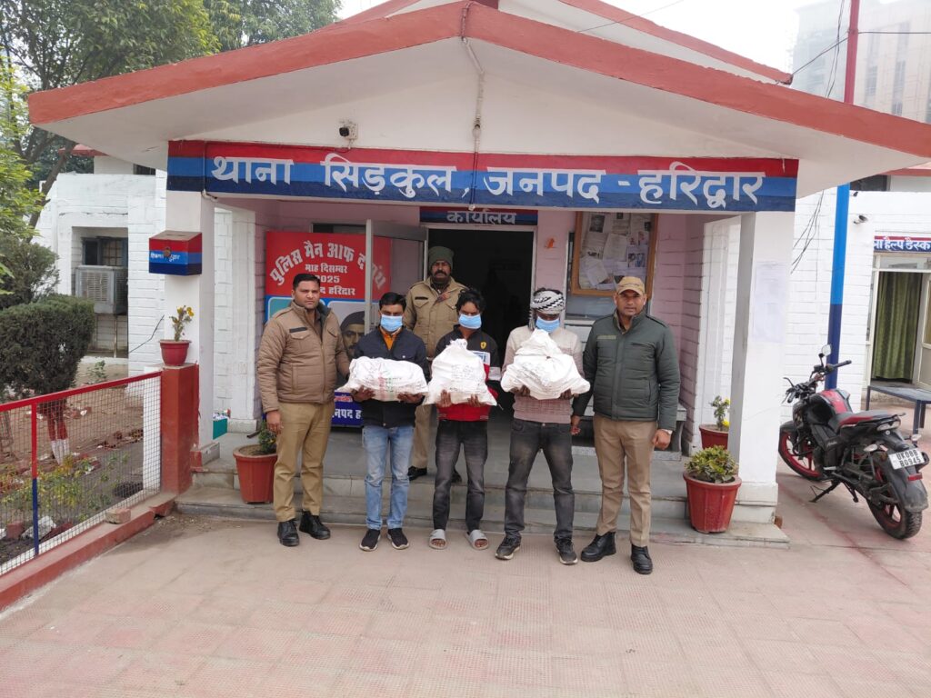 थाना सिडकुल हरिद्वार, SSP हरिद्वार के आदेशानुसार नशा तस्करों के विरुद्ध हरिद्वार पुलिस की कार्रवाई, हरिद्वार पुलिस द्वारा अवैध शराब बेचने वालों 03 आरोपियों के विरुद्धकी गई कार्यवाई, आरोपित के कब्जे से क्रमशः 52 पाउच देशी शराब किन्नू मार्का, 52 पाउच देशी शराब किन्नू मार्का व 50 पाउच किन्नू मार्का बरामद।
