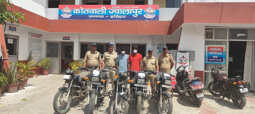 कोतवाली ज्वालापुर, एसएसपी नवनीत सिंह की अगुवाई में हरिद्वार पुलिस का लगातार अपराध पर वार, ज्वालापुर पुलिस के हाथ लगी कामयाबी, चोरी की 5 बाइक के साथ दो चोर किए गिरफ्तार,
