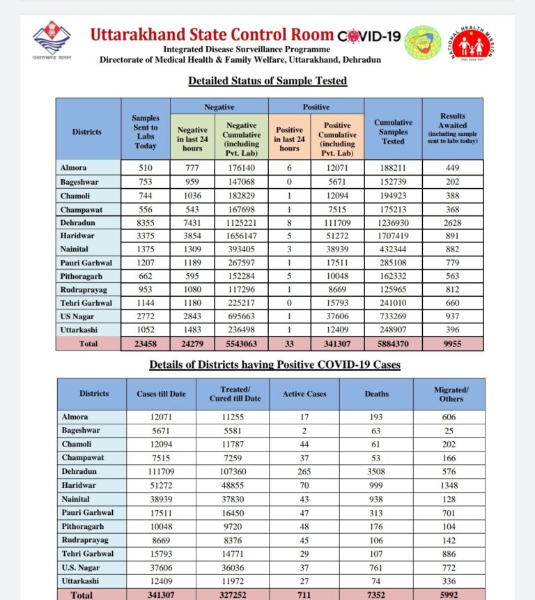 प्रदेश में आज कोरोना वायरस के कितने मामले सामने…..संक्रमण से कितनी हुई मौत…..कितने हुए ठीक… देखें आंकड़े…