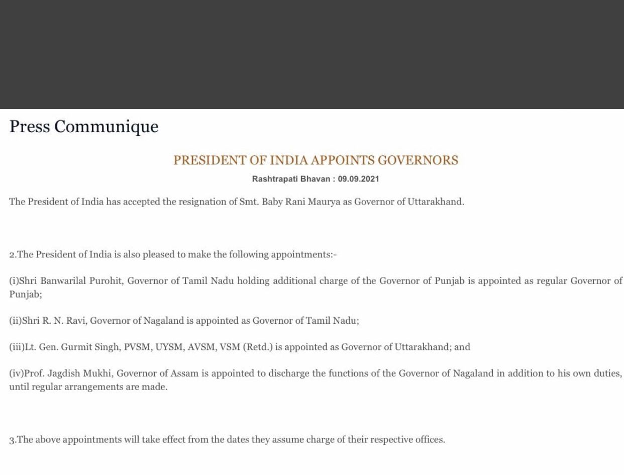 लेफ्टिनेंट जनरल गुरमीत सिंह (सेवानिवृत्त) को उत्तराखंड का राज्यपाल नियुक्त किया गया है।