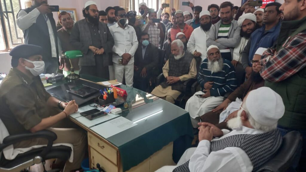 खबर रोशनाबाद पुलिस कार्यालय से जहां आज दिनांक 26 नवंबर दिन शुक्रवार को मुस्लिम संगठन के कार्यकर्ताओं द्वारा आरोपी की गिरफ्तारी को लेकर रोशनाबाद स्थित पुलिस कार्यालय एसपी क्राइम से मुलाकात कर मांग की है मुस्लिम सेवा संगठन (हरिद्वार व देहरादून) पानी टैंकर लगभग 50 कार्यकर्ता अध्यक्ष नईम कुरैशी मसूरी अध्यक्ष अकरम खान हरिद्वार संयोजक मोनिस मौलाना आरिफ , मंगलौर अध्यक्ष तारिक काजमी ) आदि के साथ अनेकों संगठन के कार्यकर्ता पुलिस कार्यालय रोशनाबाद पहुंचे जिन्होंने sp crime से मुलाकात की। संगठन के लोगों का इनका कहना था- की आरोपी वसीम (जिसके खिलाफ नगर कोतवाली में मुकदमा दर्ज है) को जल्द गिरफ्तार किया जाए और उस पर वैधानिक कार्यवाही करते हुए सजा दी जाए संगठन के कार्यकर्ताओं ने कहा कि हमें वसीम की गिरफ्तारी का ठोस आश्वासन चाहिए क्योंकि आरोपी को सजा मिलेगी तो अन्य अपराधियों को इस बात से सबक मिलेगा और अपराध पर अंकुश लग सकेगा