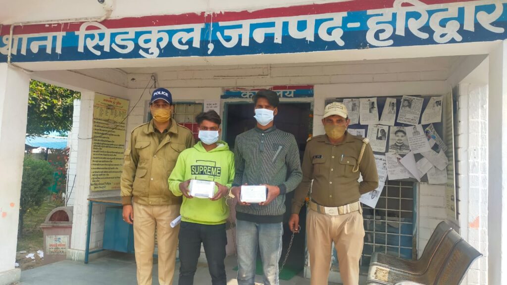 सिदकुल थानां प्रभारी प्रमोद उनियाल ने बताया कि 26 नवंबर को वादी सीता राम, निवासी डेंसो चौक, सिडकुल ने मुकदमा दर्ज कराया था कि उसका रियल मी कंपनी का मोबाइल झपट्टा मारकर अज्ञात चोर ने चुरा लिया है। उसी दिन राकेश कुमार निवासी सिडकुल ने भी तहरीर देकर मुकदमा दर्ज कराया था कि उसका विवो कंपनी का मोबाइल फोन भी झपटा मारकर अज्ञात चोर ने चोरी कर लिया है। पुलिस ने दोनों मुकदमे दर्ज कर चोरों को पकड़ने के लिए दो पुलिस टीमों का गठन किया था। पुलिस ने मुखबिर की सूचना पर आरोपी अभिषेक निवासी रावली महदूद, थाना सिडकुल को चोरी के मोबाइल रियल मी और शिवम निवासी बिजनौर को विवो कंपनी के चोरी के मोबाइल के साथ गिरफ्तार कर लिया है। दोनों आरोपियों को कोर्ट में पेश कर जेल भेजा जायेगा।
