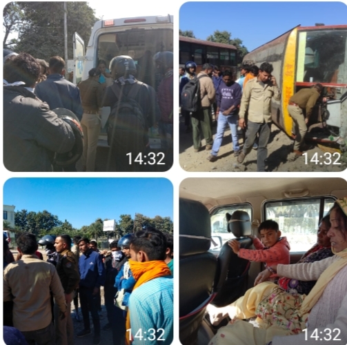 आज दिनांक 4.12.21 को समय लगभग 12:30 बजे एक नजीबाबाद डिपो की रोडवेज बस श्यामपुर के पास हाईवे पर हैंडल जाम होने के कारण सड़क पर पलट गई। जिसमें लगभग 30-40 सवारी थी सूचना पर श्यामपुर पुलिस मय फोर्स के मौके पर पहुंच कर तुरँत सवारियों को बस से बाहर निकाला गया। गनीमत रही कि किसी भी यात्री को गंभीर चोट नहीं आई है। मामूली चोट आने वाले 02 यात्रियों का मौके पर ही 108 एंबुलेंस के द्वारा इलाज कर दिया गया।श्यामपुर पुलिस ने मौके पर बस साइड करवाई एवं यातायात सुचारू किया।