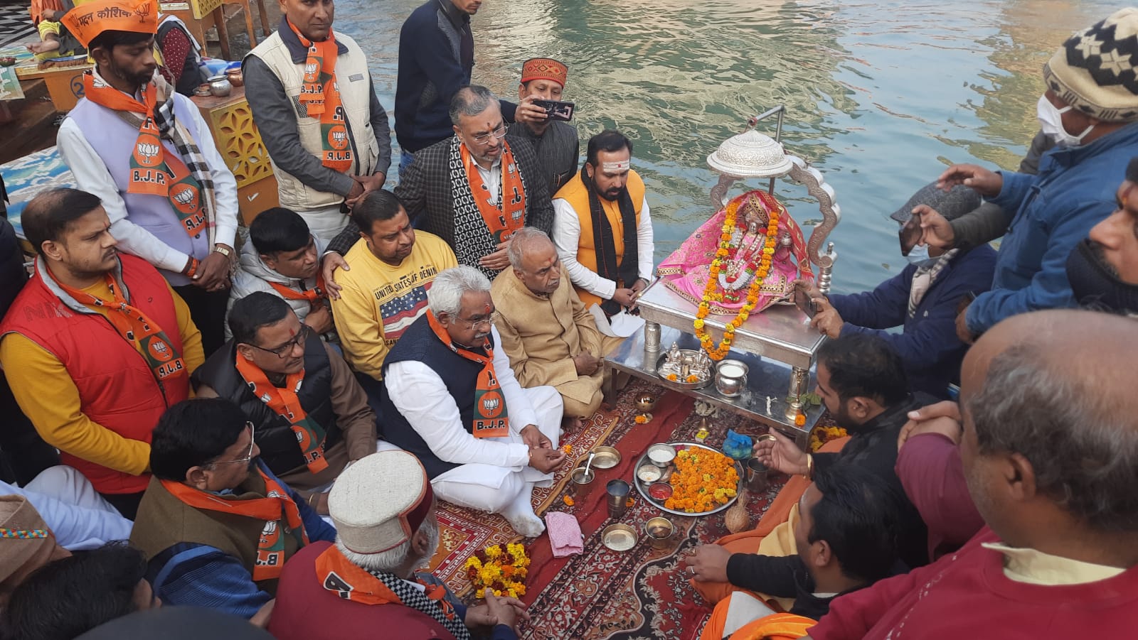 भारतीय जनता पार्टी की विजय संकल्प यात्रा के प्रचार रथों का भाजपा प्रदेश अध्यक्ष मदन कौशिक ने हरकी पैड़ी पर गंगा की पूजा करने के बाद हरी झंडी दिखाकर रथ का शुभारंभ किया। भाजपा के इस रथ को 18 दिसंबर को भाजपा राष्ट्रीय अध्यक्ष जेपी नड्डा, मुख्यमंत्री पुष्कर सिंह धामी और प्रदेश अध्यक्ष मदन कौशिक द्वारा झंडी दिखाकर रवाना किया जाएगा। रथ के शुभारंभ के बाद चुनावी माहौल बनाने के लिए शहर में रोड शो निकाले जाने की भी पूरी तैयारी कर ली गई है।