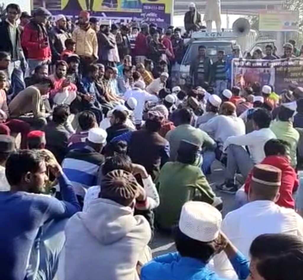 अपनी पुस्तक में की गई अमर्यादित टिप्पणी करने एवं हाल ही में हुई धर्म संसद में भड़काऊ भाषण देने को लेकर वसीम रिजवी उर्फ जितेंद्र नारायण त्यागी के खिलाफ शहर कोतवाली में मुस्लिम समाज ने दो मुकदमें दर्ज कराए हुए हैं। शुक्रवार को जुमे की नमाज के बाद करीब दो बजे के पुल जटवाड़ा पर मुस्लिम समाज के लोग एकत्र होने लग गए। देखते ही देखते प्रदर्शनकारियों की संख्या बढ़ती ही गई। धरने पर बैठे समाज के लोग वसीम रिजवी उर्फ जितेंद्र नारायण त्यागी समेत भड़काऊ भाषण देने वाले अन्य आरोपियों की गिरफ्तारी की मांग करने लगे। प्रदर्शनकारियों का आरोप था कि पुलिस के जिम्मेदार अफसर खुद ही आरोपियों के साथ फोटो शूट करा रहे थे, ऐसे पुलिस अधिकारियों को भी हटाया जाना चाहिए। जिससे निष्पक्ष जांच हो सके। धरनास्थल पर एसपी सिटी स्वतंत्र कुमार सिंह, सीओ सिटी शेखर जुयाल, कोतवाली प्रभारी चंद्रचंद्राकर नैथानी, एसएसआई नितेश शर्मा मौके पर पहुंच गए। प्रदर्शनकारियों में मुस्लिम सेवा संगठन के अध्यक्ष नईम कुरैशी, गुलबहार खान, सलीम, अजमत अल्वी, साकिब, शादाब कुरैशी, तनवीर, कादिर,शमशाद,फिरोज,राशिद, रहमान, नदीम, रहमान,समीर सहित अन्य लोग मौजूद रहें।