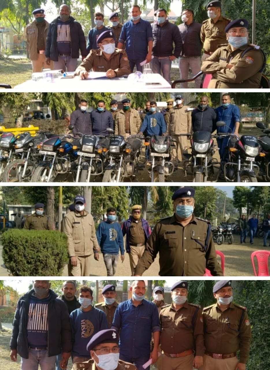 कोतवाली रानीपुर कैंपस में पत्रकारों से वार्ता करते हुए नगर पुलिस अधीक्षक स्वतंत्र कुमार सिंह ने बताया कि बीते कुछ दिनों से बाइक चोरी की घटनाएं सामने आ रहीं थीं। रानीपुर पुलिस एवं सीआईयू ने मुखबिर की सूचना पर रविवार देर रात एक मोटरसाइकिल सवार युवक से पूछताछ की। युवक ने बताया कि बाइक चोरी मामलों में शामिल रहा है। आरोपी की निशानदेही पर क्षेत्र से आठ मोटरसाइकिल बरामद की गई। आरोपी ने स्वयं को अंकित सैनी पुत्र धरमसिंह निवासी थाना हसनपुर जिला अमरोहा यूपी हाल निवासी तिरुपति कालोनी सिडकुल बताया। बताया कि उसके पास काफी चाबियां हैं। जिनकी मदद से वह मोटरसाइकिल चोरी की वारदात को अंजाम देता था। नगर पुलिस अधीक्षक ने बताया कि आरोपी सिडकुल की एक प्रिंटिंग प्रेस में कार्य करता है। वह नशे का भी आदी है। आरोपी के खिलाफ सम्बंधित धाराओं में मुकदमा दर्ज कर जेल भेजा जा रहा है।