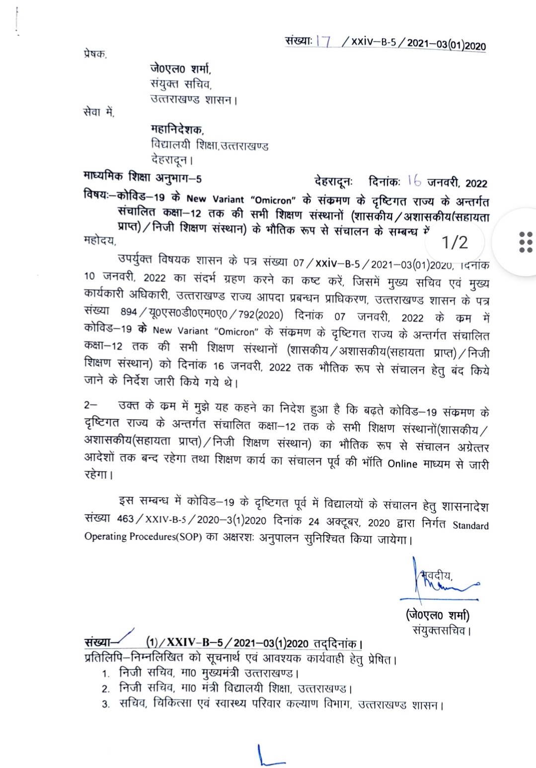 शिक्षा सचिव ने बताया कि स्कूलों को लेकर आज आपदा प्रबंधन सचिव से विस्तृत बात की गई थी। आपदा प्रबंधन विभाग कोविड 19 के लिए नई एसओपी तैयार कर रहा है। इस क्रम शिक्षा विभाग ने ऐहतियातन स्कूलों को अग्रिम आदेश तक बंद रखने का निर्णय किया है। एसओपी में तय वक्त तक स्कूल को बंद रखा जाएगा। शिक्षा सचिव ने बताया कि इस अवधि में पूर्व की तरह ऑनलाइन पढ़ाई कराई जाएगी।