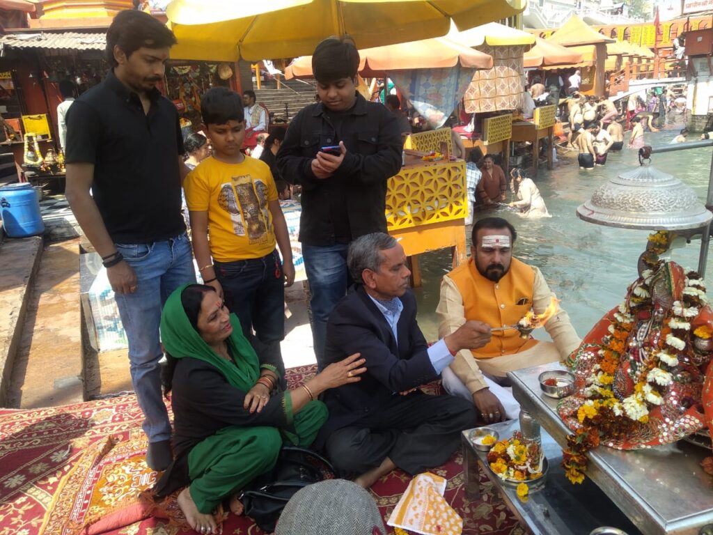 उत्तराखंड चुनाव की दृष्टि से प्रेषक बना कर भेजे गए केंद्र सरकार के बड़े अधिकारी श्री राम मोहन मिश्रा अपने परिवार के साथ हर की पौड़ी ब्रह्म कुंड में पहुंचे जहां पर उन्होंने गंगा जी की पूजा अर्चना की एवं दुग्ध अभिषेक किया।