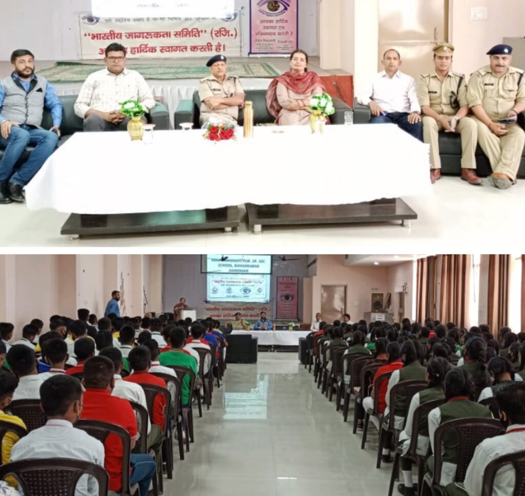 भारतीय जागरूकता समिति द्वारा माँ सरस्वती पब्लिक सीनियर सेकंडरी स्कूल बहादराबाद में विधिक जागरूकता पर कार्यशाला का आयोजन किया गया जिसमे मुख्य अथिति एस पी क्राइम/ ट्राफिक मनोज कत्याल, ए आर टी ओ रश्मी पंत, एस ओ बहादराबाद रणबीर सिंह चौहान एम् हाईकोर्ट के अचिवक्ता ललित मिगलानी उपस्थित रहे ।