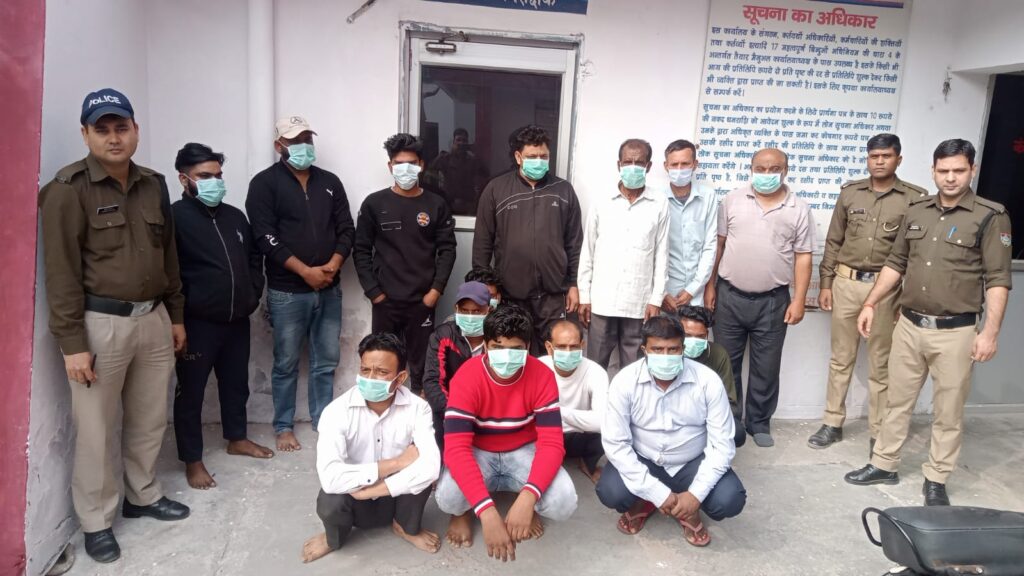 हरिद्वार की ज्वालापुर कोतवाली पुलिस ने सट्टे की खाई वाड़ी करते 15 सटोरियों को गिरफ्तार कर उनके कब्जे से 37000 रुपए की नकदी बरामद की हैआपको बता दे कोतवाली क्षेत्र के मौ0 कडच्छ में कुछ व्यक्तियों की सट्टा/जुए खेलने की सूचना पुलिस को प्राप्त हुई जिस पर प्रभारी निरीक्षक कोतवाली ज्वालापुर द्वारा वरिष्ठ उप निरीक्षक अंशुल अग्रवाल। व उप निरीक्षक सुधांशु कौशिक के नेतृत्व में तुरंत पुलिस टीम को रवाना किया गया पुलिस टीम द्वारा मौके पर 15 व्यक्तियों को मौ0कडच्छ से सट्टे की खाई वाडी करते हुए गिरफ्तार किया गया है।सभी के विरुद्ध जुआ अधिनियम धारा 13 में मुकदमा दर्ज कर आगे की कार्यवाही की गई है।नाम पता गिरफ्तार अभियुक्त