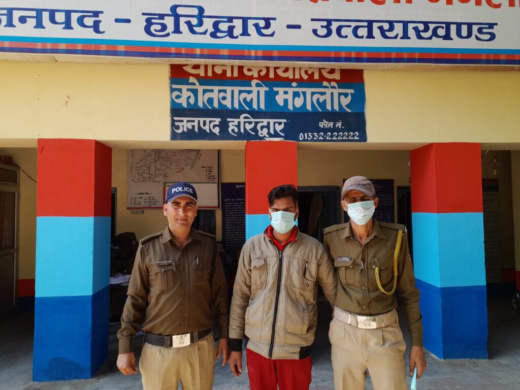 हरिद्वार:-कोतवाली मंगलौर पुलिस ने हत्या के प्रयास में फरार अभियुक्त को पकड़ा, घटना में प्रयुक्त लोहे का ऐंगल बरामद।थाना कोतवाली मंगलौर पर वादी श्री मंजीत पुत्र मदनपाल निवासी ग्राम भूराहेडी थाना पुरकाजी जिला मु0नगर द्वारा दिनाक 24-10-22 को खुद के भतीजे राजन के साथ गाली गलौच कर जान से मारने की धमकी देने के करने के संबंध में मुकदमा पंजीकृत किया गया था। दौराने विवेचना मुकदमा में धारा 147, 148, 149, 307 की बढोतरी की गई।अभियुक्त की गिरफ्तारी हेतु गठित टीम द्वारा लगातार दविश देते हुए मुखबिर तंत्र को सक्रिय किया गया था जिसके परिणामस्वरूप आज दिनांक 12,11.22 को अभियुक्त मोहित पुत्र भोपाल निवासी ग्राम खेडाजट्ट कोत0 थाना मंगलौर को घटना में प्रयुक्त लोहे के ऐंगल के साथ पकड़ा गया।