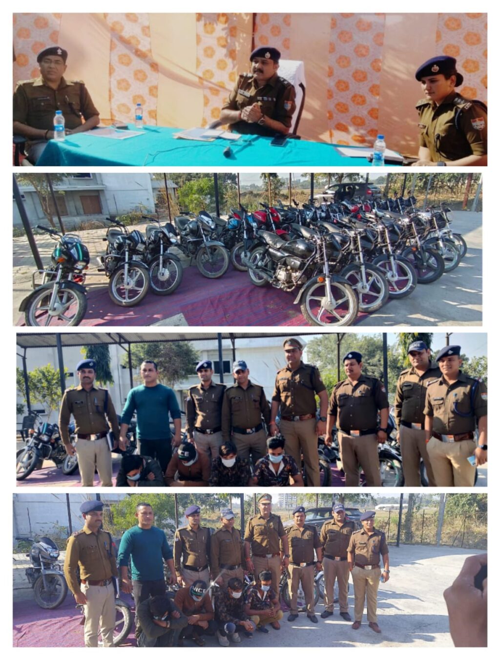 5 बिना नंबर प्लेट स्प्लेंडर HA10ERGHH47283 MBLHA10CGGHH36011 काली जानकारी की जा रही है।6 बिना नंबर प्लेट प्लेटिना DUUBRC10042 MD2DDDZZZRPC59627 काली जानकारी की जा रही है।7 बिना नंबर प्लेट स्पलेंडर HA10AGKHGA0553 MBLHAW095KHG60429 ग्रे मु0अ0स0 573/22 थाना रानीपुर
