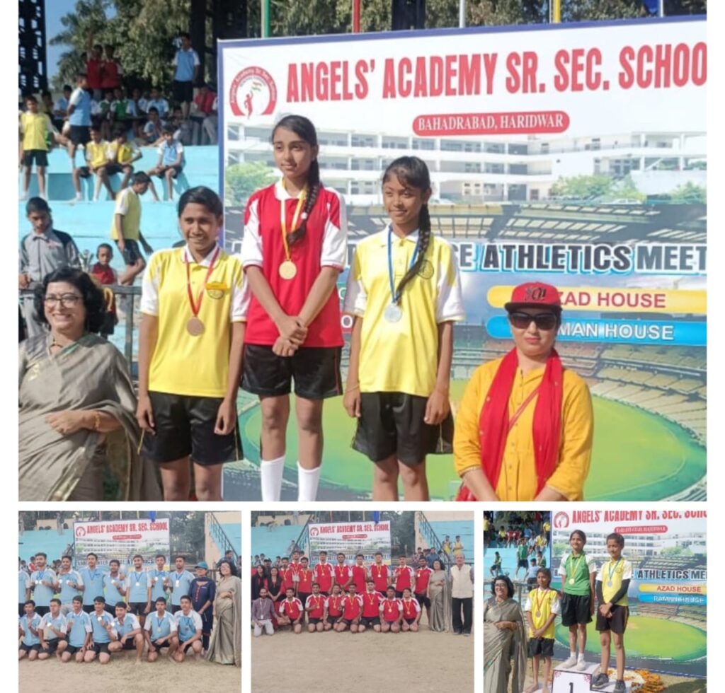 हरिद्वार के बहादराबाद स्थित एंजिल्स अकादेमी सीनियर सेकंडरी स्कूल का पाच दिन तक चलने वाले “वार्षिक खेलोत्सव” का कल (26-11-2022) को भल्ला स्टेडियम, हरिद्वार में सफलतापूर्वक समापन हुआ। पाचवें ओर अंतिम दिन कक्षा 6 से कक्षा 12 तक के बच्चों ने फ़ाइनल प्रतियोगिताओं में भाग लिया। जिसमे बच्चों की 100, 200 व 400 मीटर रेस,1600 मीटर रेस,शॉटपुट थ्रो,रिले रेस,टग ऑफ वार व जवेलीन थ्रो के मुकाबले करवाए गए। इस कार्यक्रम में टैगोर हाउस ने 59 मेडल के साथ प्रथम स्थान, शिवाजी व आजाद हाउस 42 मेडल के साथ दूसरे स्थान पर, रमन हाउस 40 मेडल के साथ तीसरे स्थान पर रहा ।
