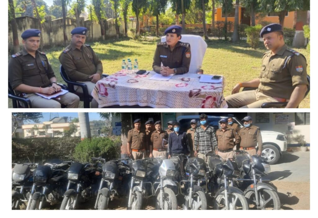 हरिद्वार पुलिस की तेजतर्रार कार्यशैली से अपराधी आ रहे गिरफ्त में,एसएसपी हरिद्वार के दिशा-निर्देशों पर वाहन चोरों के खिलाफ कड़ी कार्रवाई जारी। 10 चोरी की मोटरसाइकिलों के साथ हरिद्वार पुलिस ने दबोचे 02 शातिर अभियुक्तगण,प्रभारी पुलिस अधीक्षक यातायात सुश्री रेखा यादव द्वारा प्रेस वार्ता कर किया गया खुलासा,जनपद में कार्यभार संभालने के उपरांत से एसएसपी हरिद्वार श्री अजय सिंह की कार्यशैली शातिर अपराधियों पर भारी पड़ रही है दिन प्रतिदिन एक से बढ़कर एक शातिर अपराधी/बदमाश/अभियुक्त हरिद्वार पुलिस की गिरफ्त में आ रहे हैं।