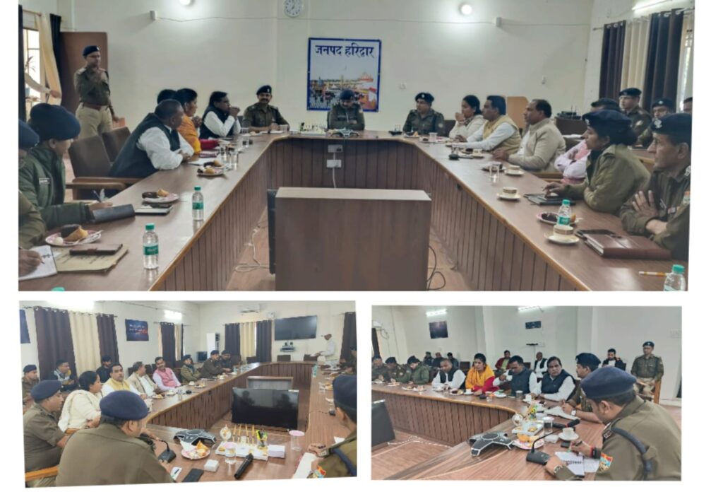 हरिद्वार:-जिला पुलिस कार्यालय रोशनाबाद में एसएसपी अजय सिंह ने अपराध नियंत्रण एवं कानून व्यवस्था जैसे अहम मसले पर जिले के विधायकों के साथ मंथन किया। एसएसपी की इस नई पहल को विधायकों ने सराहते हुए बेहतर समन्वय स्थापित होने का भरोसा दिलाया है जिला पुलिस कार्यालय रोशनाबाद में एसएसपी अजय सिंह ने नई परंपरा की शुरुआत करते हुए जिले के विधायकों संग बैठक करते हुए कई मुद्दों पर विचार साझा किए। एसएसपी अजय सिंह ने आमजन की समस्याओं के समाधान के लिए बेहतर समन्वय स्थापित कर कार्य करने की बात पर जोर दिया। उन्होंने कहा कि आमजन की शिकायत चाहे किसी भी स्तर पर हो उसका निदान होना आवश्यक है।एसएसपी ने बैठक में मौजूद राजपत्रित अधिकारियों को निर्देशित किया कि विधायक उन्हें यदि किसी प्रकरण से अवगत कराते हैं तो उसका गुण दोष के आधार पर निदान होना चाहिए। रिस्पांस हर शिकायत पर तुरंत मिलना चाहिए। राजपत्रित अधिकारियों से कहा कि समय समय पर अपने-अपने क्षेत्र के जन प्रतिनिधियों के साथ बैठक होना भी जरूरी है। विधायकों ने एसएसपी को भरोसा दिलाया कि कि जनहित में पुलिस को पूरा सहयोग किया जाएगा। जनप्रतिनिधि पूरी तरह से पुलिस के साथ कंधे से कंधा मिलाकर चलेंगे।बैठक में विधायक रवि बहादुर, विधायक ममता राकेश, विधायक अनुपमा रावत, विधायक आदेश चौहान, विधायक फुरकान अहमद, विधायक सरबत करीम अंसारी, विधायक हाजी मोहम्मद शहजाद, एसपी सिटी स्वतंत्र कुमार सिंह, एसपी देहात एसके सिंह समेत जिले के सीओ मौजूद रहे।