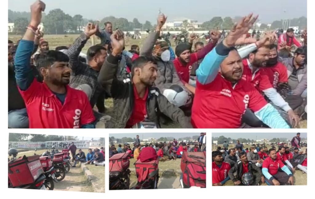 कम्पनी द्वारा इंसेंटिव बन्द करने पर गुस्साए जोमैटो के कई कर्मचारियों ने कार्य का बहिष्कार कर भेल सेक्टर 4 में किया विरोध प्रदर्शन…..मांगे पूरी होने तक जारी रहेगा विरोध…..