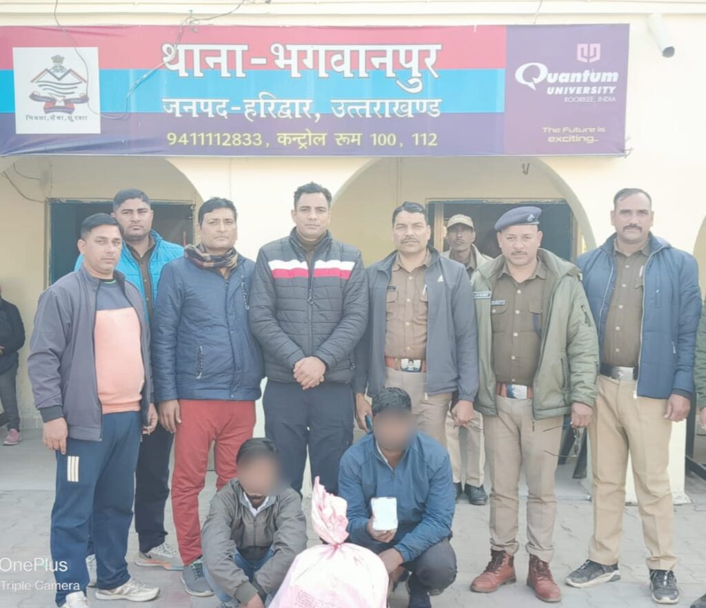 दिनांक-22.12.2022 को थाना भगवानपुर व उत्तराखण्ड गौवंश स्कवायड गढवाल परिक्षेत्र को मुखबीर खास द्वारा सूचना दी गयी की ग्राम सिकन्दरपुर भैंसवाल का रहने वाला फैजान व उसके साथी ग्राम सिरचन्दी में गन्ने के खेत में गौकशी कर रहे है सूचना पर ग्राम सिरचन्दी में स्थित मुखबीर के बताये गन्ने के खेत के पास जाने पर दूर से 05 व्यक्ति गौकशी करते दिखायी दिये पुलिस टीम को देख उक्त पांचो व्यक्ति वंहा से भागे जिनमें पुलिस टीम द्वारा 02 व्यक्तियों 1-रक्खा पुत्र अमीर अहमद निवासी सिकन्दरपुर भैंसवाल थाना भगवानपुर जिला हरिदवार व 2-सोहराब पुत्र कदीर निवासी सिकन्दरपुर भैंसवाल थाना भगवानपुर जिला हरिद्वार को मौके पर पकड लिया गया । पूछताछ में भागने वाले 03 व्यक्तियो के नाम 1- वसीम उर्फ काला पुत्र अमीर अहमद व 2-फैजान पुत्र अमीर अहमद 3-हारून पुत्र कदिर निवासी गण सिकन्दरपुर भैंसवाल थाना भगवानपुर जिला हरिद्वार बताया मौके से करीब 189 किलो गौमांस मय गौकशी उपकरण बरामद हुए । जिसके सम्बन्ध में थाना भगवानपुर पर मु0अ0सं0 1191/22 धारा 3/5/11 उत्तराखण्ड गौवंश संरक्षण अधिनियम बनाम रक्खा आदि पंजीकृत किया गया। फरार अभियुक्त गण को शीघ्र गिरफ्तार किया जायेगा ।अभियुक्त को माननीय न्यायालय के समक्ष पेश किया जा रहा है।