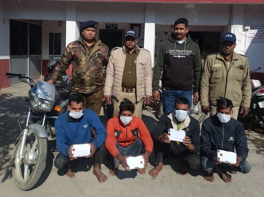 हरिद्वार के ज्वालापुर को पुलिस ने मोबाइल स्नैचिंग की घटनाओं पर रोक लगाने हेतु एसएसपी हरिद्वार द्वारा दिए गए निर्देशों के क्रम में पुलिस टीम द्वारा दिनांक 19/12/22 को पीड़िता का मोबाइल छीनने संबंधी मामले में स्नैचिंग की घटनाओं में लिप्त 04 अभियुक्तों को अलग अलग जगहों से छीने गए 04 मोबाइल व घटना में प्रयुक्त चोरी की बाइक के साथ दबोचा गया।