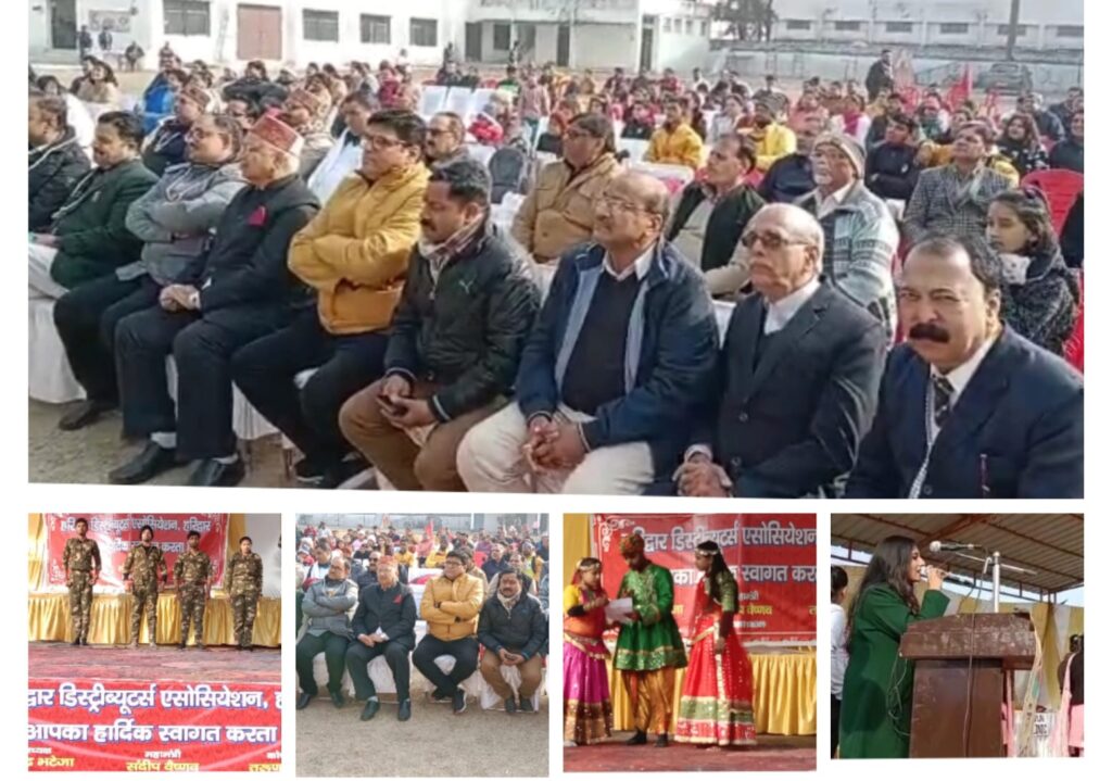 हरिद्वार:–डिस्ट्रीब्यूटर्स एसोसिएशन का वार्षिकोत्सव धूमधाम से भेल सेक्टर दो के समीप गुरु नानक एकेडमी स्कूल में मनाया गया। महिलाओं और बच्चों की कई प्रतियोगिताएं आयोजित की गयीं। जिसमें महिलाओं और बच्चों ने उत्साहपूर्वक भाग लिया। एसोसिएशन के अध्यक्ष सुरेंद्र भटेजा ने कहा कि व्यापारी हित ही एसोसिएशन की सर्वोच्च प्राथमिकता हैं। जिसे सभी के सहयोग से पूरा करने का निरंतर प्रयास किया जा रहा है। उन्होंने कहा कि डिस्ट्रीब्यूटर्स आर्थिक प्रगति में सहयोग करने के साथ समय समय पर सामाजिक सेवाओं में भी योगदान करते हैं। उत्पाद की गुणवत्ता को लेकर व्यापारी सजग हैं। समय समय पर शासन प्रशासन के सहयोग से जनजागरूकता अभियान भी संचालित करते हैं।व्यापारी हित ही एसोसिएशन की सर्वोच्च प्राथमिकता हैं।