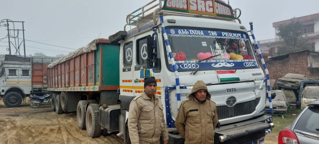 वाहन विवरण:—वाहन सं0 PB03BD-0267 ट्रक।वाहन सं0 UP15DT-7947 ट्रक