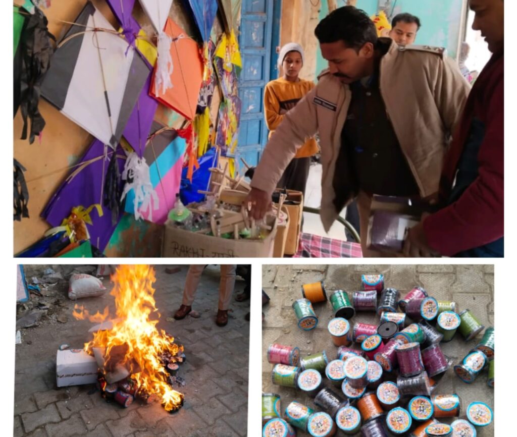 मकर सक्रांति पर्व के दृष्टिगत बहादराबाद पुलिस ने थाना क्षेत्र की पतंग की दुकानों पर चाइनीज मांझे को लेकर चलाया चैकिंग अभियान….चाइनीज मांझे की चरखीयां मिलने पर की गई आग के हवाले…..