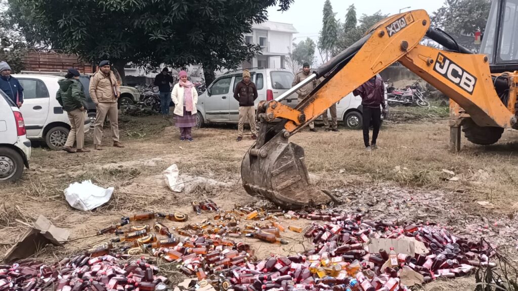 हरिद्वार पुलिस द्वारा कुल 748 लीटर शराब को किया विनष्टीकरण।वरिष्ठ पुलिस अधीक्षक हरिद्वार अजय सिंह द्वारा जनपद हरिद्वार के सभी थाना प्रभारीगणों को पूर्व के मुकदमों से संबंधित शराब को विनष्टीकरण करने के साथ ही थानों में लम्बित मालों के निस्तारण हेतु निर्देश जारी किये गये थे जिस के क्रम में आज दिनांक 10 जनवरी 2023 को माननीय न्यायालय अपर मुख्य न्यायिक मजिस्ट्रेट हरिद्वार के आदेश पर कमेटी गठित की गई, जिसमें तहसीलदार श्रीमती रेखा आर्य , मजिस्ट्रेट हरिद्वार, पुलिस क्षेत्राधिकारी निहारिका सैमवाल और थानाध्यक्ष थाना बहादराबाद के द्वारा थाना परिसर में ही कुल 748 लीटर शराब का जेसीबी मशीन से विनष्टीकरण की कार्यवाही करते हुए 24 लम्बित मालों का निस्तारण करवाया गया