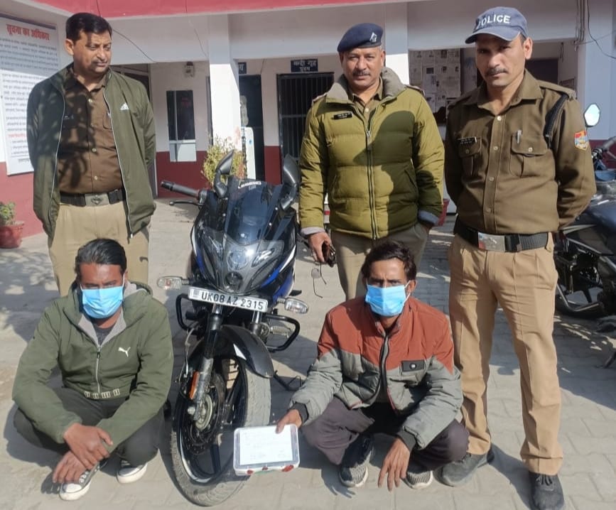 1.राहुल कुमार पुत्र संजय कुमार निवासी मोहल्ला कैथवाडा अंबेडकर नगर चौक कोतवाली ज्वालापुर हरिद्वार उम्र 25 वर्ष,,मिंटू पुत्र शंकरलाल निवासी मोहल्ला कडच्छ ज्वालापुर हरिद्वार उम्र 38 वर्ष….बरामदगी