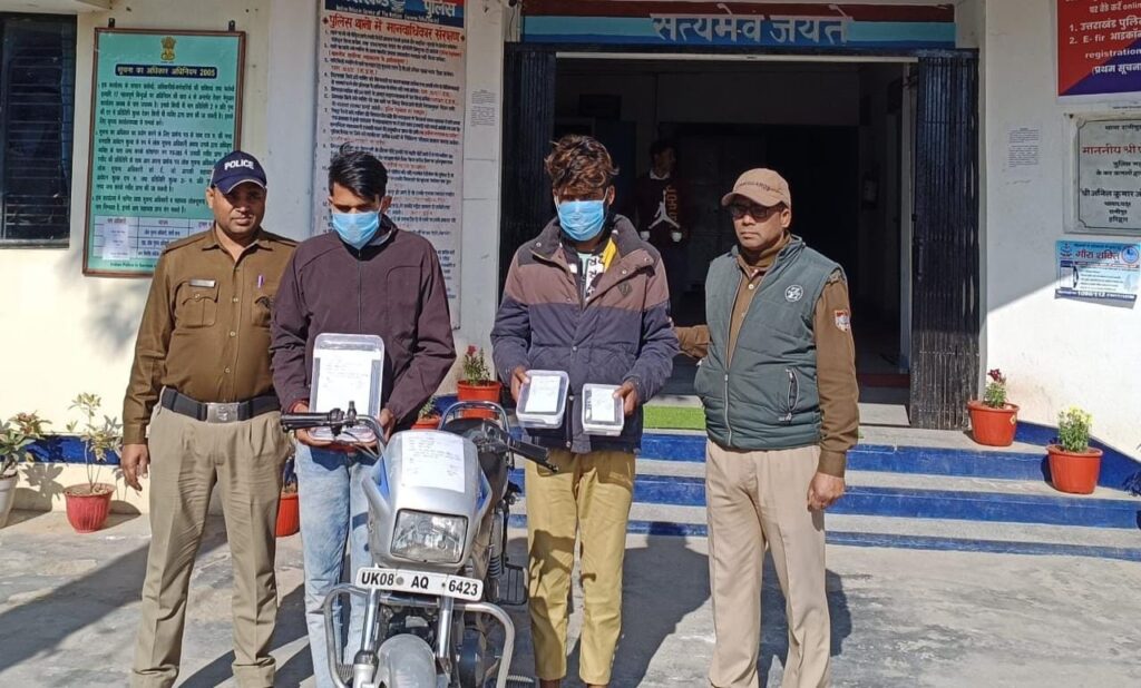 1.अर्जुन कुमार पुत्र हुकुम सिंह निवासी ग्राम जमुना खास थाना नौगांव जिला अमरोहा उत्तर प्रदेश हाल पता राम धाम कॉलोनी कोतवाली रानीपुर हरिद्वार,,,,2-विशाल कुमार पुत्र सुरेश कुमार निवासी ग्राम श्यामी वाला थाना मंडावली जिला बिजनौर उत्तर प्रदेश हाल पता राम धाम कॉलोनी कोतवाली रानीपुर हरिद्वार।