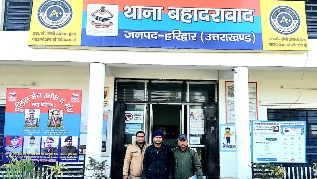 हरिद्वार बहादराबाद:—10 वर्षीय बालक के साथ यौन उत्पीड़न के सम्बन्ध में दिनांक 06.07.2022 को थाना बहादराबाद में दर्ज मु0अ0स0 271/22 धारा 377, 323 I.P.C. में लगातार फरार चल रहे नामजद अभियुक्त कल्लू को S.O.G. रुड़की एवं थाना स्थानीय की संयुक्त पुलिस टीम ने अथक प्रयास के पश्चात दबोचने में सफलता हासिल की।फरार रहने पर अभियुक्त के विरुद्ध माननीय न्यायालय के आदेशानुसार धारा 82/83 CrPC की कार्यवाही कर मफरुरी में दिनांक 26.10.2022 को आरोप पत्र माननीय न्यायालय प्रेषित किया जा चुका है।उक्त प्रकरण के अतिरिक्त अभियुक्त कल्लू के खिलाफ दहेज अधिनियम में कोतवाली रानीपुर एवं पशु क्रुरता अधिनियम में थाना मुनी की रेती टिहरी गढ़वाल में भी मुकदमें दर्ज हैं।