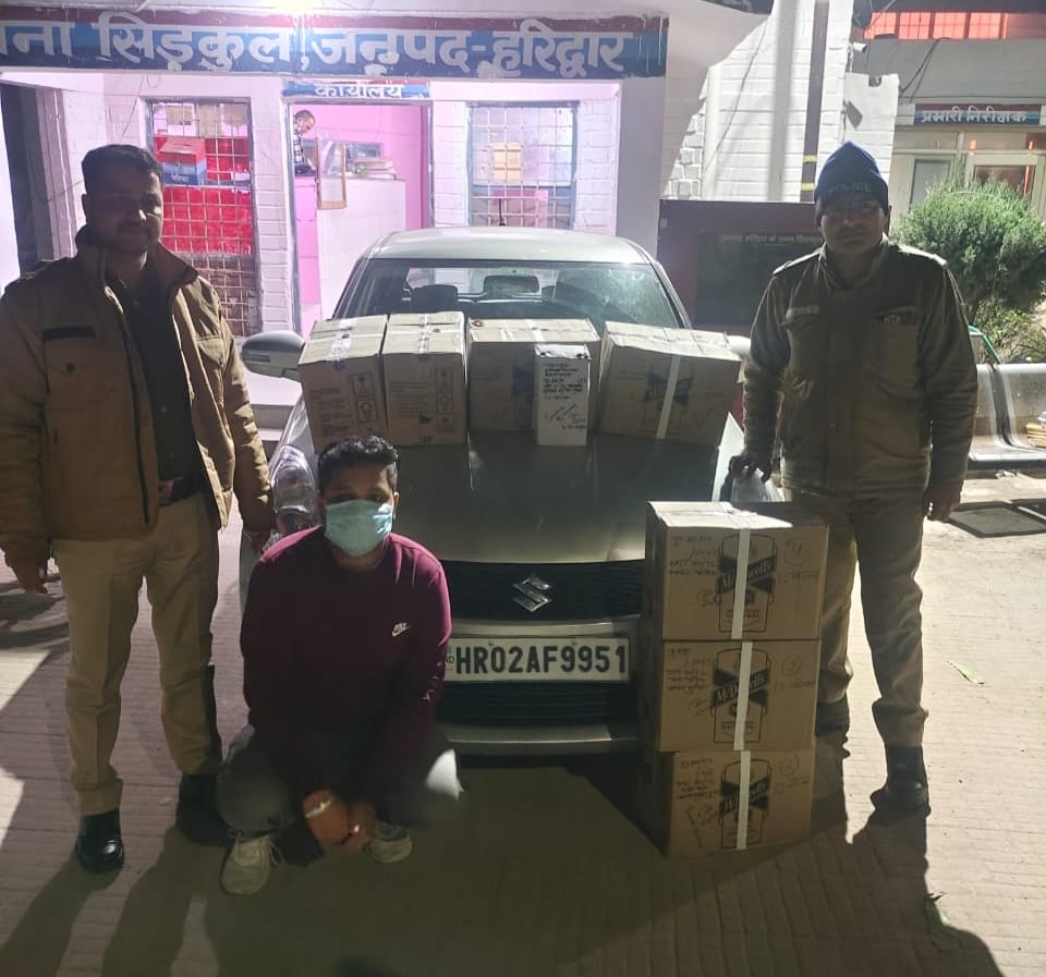 हरिद्वार के सिडकुल थाना पुलिस ने एक कार से भारी मात्रा में अवैध अंग्रेजी शराब पकड़ी है। पुलिस ने गाड़ी को सीज कर दिया और युवक के खिलाफ आबकारी अधिनियम में मुकदमा दर्ज किया जा रहा है।