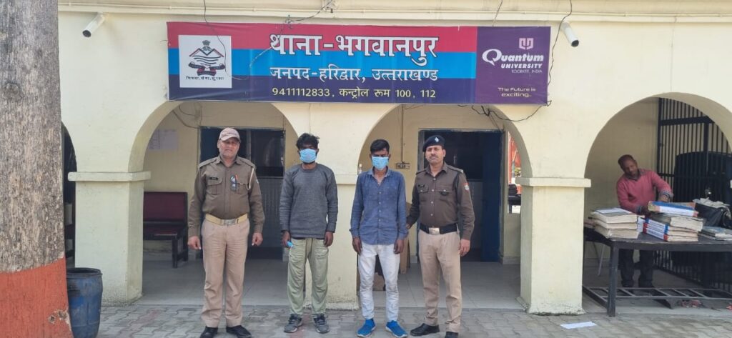 1- मोहम्मद शहजाद उर्फ कल्लू पुत्र मोहम्मद सलीम निवासी ग्राम सिसौना थाना भगवानपुर जनपद हरिद्वार,2- सुमित कुमार पुत्र श्री किरण कुमार निवासी मोहित पुर थाना भगवानपुर जनपद हरिद्वार।बरामद सामान का विवरणः-